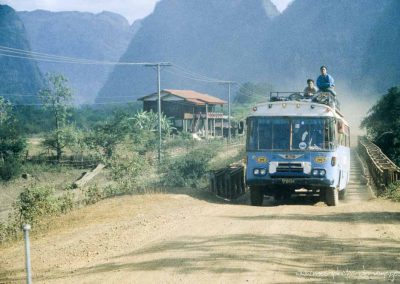 Je suis donc allé au Laos en novembre 2000 (déjà !!). J’ai pris un vol sec pour la Thaïlande. J’en ai bien sur profité pour visiter Bangkok pendant 3 jours puis, après avoir réglé les formalités administratives, j’ai pris un train en direction de Nong Khai et, le lendemain matin, j’ai traversé le Mékong en direction de la capitale Vientiane.